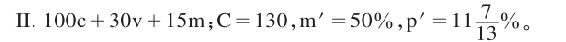 I. 100c+20v+10m;C=120,m′=50%,p′=