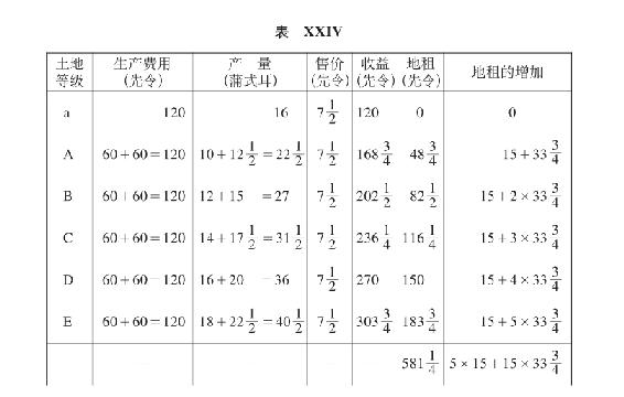 (b)B级土地不是完全没有地租(表XIV)。
