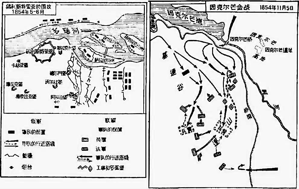 但是在目前看来,这些推断都是次要的。没有奥地利的帮助,俄国休想在现代的敌人的眼前穿过巴尔干。现在锡利斯特里亚对于俄军具有头等的防御意义,并且意义如此重大,以致不夺取它,俄军就可以认为今年的战局失败了。锡利斯特里亚的位置正对着俄军从茹尔日沃经卡拉腊什和切纳沃达到居斯坦杰的阵地的中心。既然在这一阵地的前面有坚强的要塞体系,既然奥美尔-帕沙坐镇苏姆拉像蜘蛛在它的网里监视着猎取对象的每一个动作一样,既然在卡姆契克河和迭夫年斯卡河可能出现联军,那末,俄国用于多瑙河战争的军队在无外援的情况下将很少可能向色雷斯盆地突进(这个盆地的青翠景色曾经诱惑过越过巴尔干山的吉比奇的疲乏的兵士)。俄国在奥地利没有同它联合以前,或者在它的最厉害的敌人——英法军队没有因某种情况而遭到削弱或被迫撤走以前,至少在今年只能单纯防守它目前已夺得的领土。防御战需要有野战防御工事体系或者(在可能时)永备防御工事体系。但是只要锡利斯特里亚仍在敌人手中,俄军除开多布鲁甲的一些小型堡垒便没有任何永备工事,并且这些小型堡垒在瓦拉几亚失守时就会毫无用处。俄军可能修复布来洛夫和鲁舒克的一些工事,并在布加勒斯特附近建立一个营垒,但是在他们没有占领锡利斯特里亚以前,他们真正可用的第一道防线将远在后方,即在塞勒特河—福克夏尼—加拉兹—伊兹马伊尔这一线上。