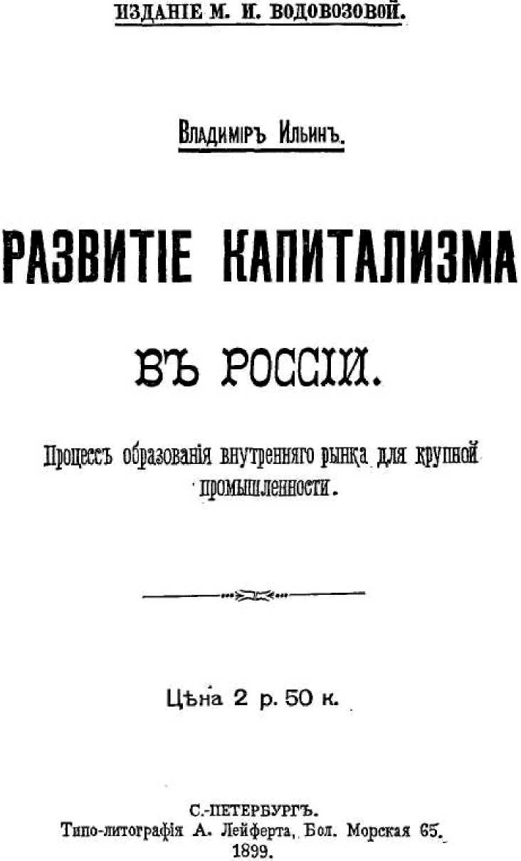 Это научное исследование и было осуществлено Лениным в книге «Развитие капитализма в России», которая явилась завершением ленинских работ 90-х годов, направленных против либеральных народников и